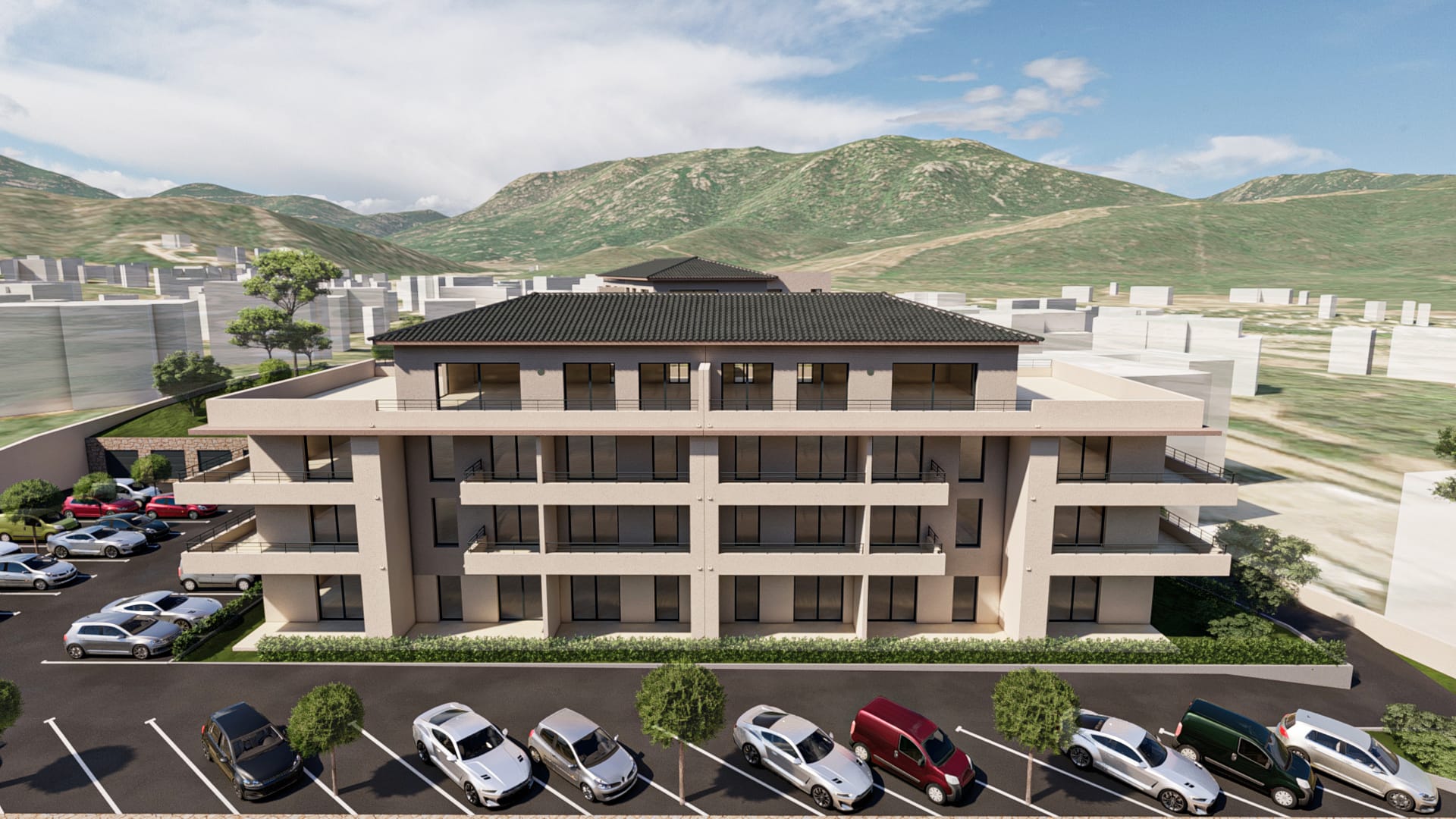 Un espace libre, intime, à façonner selon ses envies, avec une vue dégagée sur les montagnes en toile de fond.